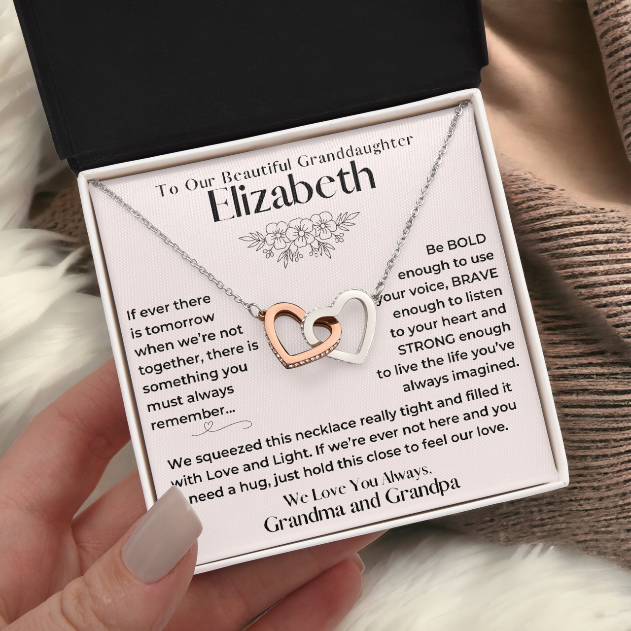 Embrace the timeless connection with your granddaughter through our Interlocking Hearts Necklace.